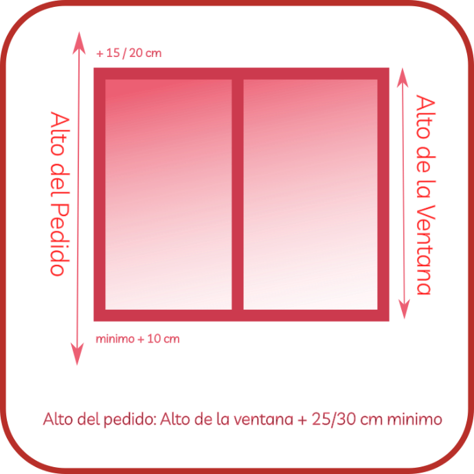 Por ejemplo: Si la ventana mide 100 cm de alto, tienes que pedir un estor de 135 cm de alto minimo (100 + 35 cm).